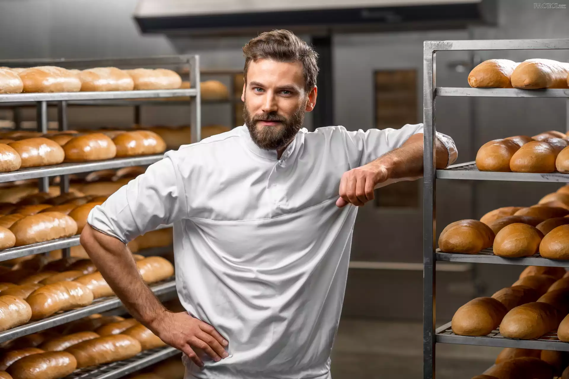 Bochenki, Piekarnia, Piekarz, Mężczyzna, Regały, Chleb - faceci.biz