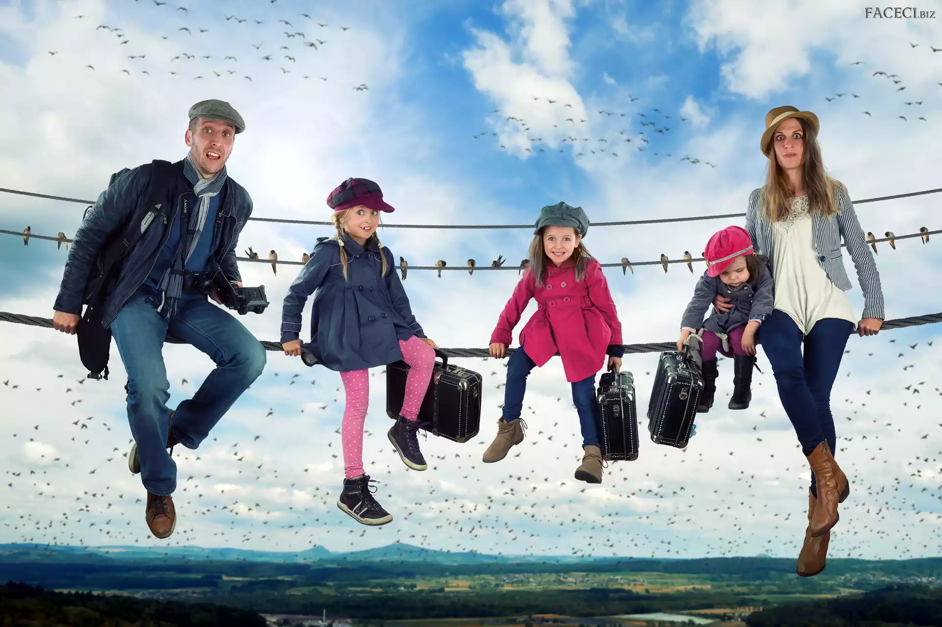 Chmury, Niebo, Dzieci, Rodzina, Ptaki - faceci.biz